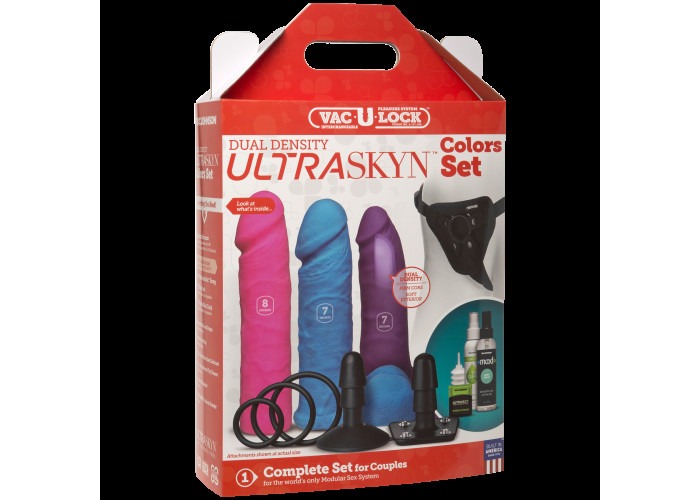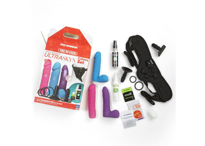 Яскравий і спокусливий набір Dual Density UltraSKYN Colors Set від Doc Johnson - це відмінний набір, який підійде як для новачків, так і для досвідчених користувачів. У наборі Ви знайдете 3 фалоімітатори різних розмірів, 2 кріплення на присосці і засувках, регульовані трусики, 3 змінних кільця і засоби по догляду за іграшками.