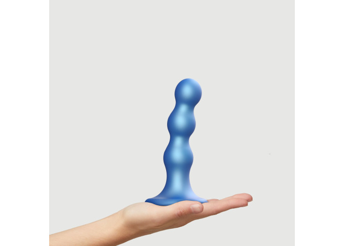 Насадка для страпона Strap-On-Me Dildo Plug Balls Blue Metallic є в п’яти розмірах, які підійдуть як для новачків, так і для досвідчених користувачів і відкривачів нових граней насолоди.
