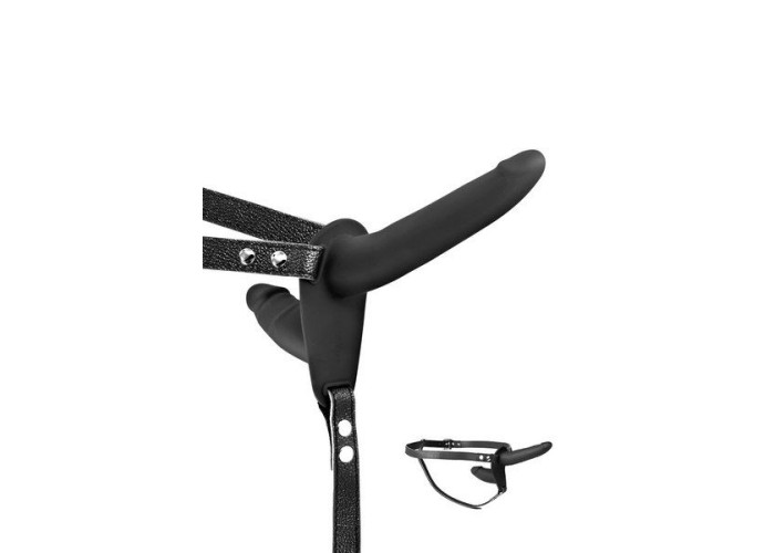 Фалоімітатори пружні і приємні на дотик. Зовнішній з завуженим кінчиком комфортний при введенні, а на внутрішньому ви особливо оціните реалістичну голівку. Ремінець для кріплення виготовлений з якісної екокожі і регулюється за об’ємом. Передбачене також вільне регулювання по висоті.