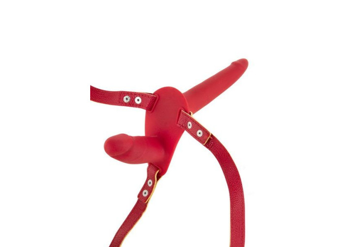 Фалоімітатори пружні і приємні на дотик. Зовнішній з завуженим кінчиком комфортний при введенні, а на внутрішньому ви особливо оціните реалістичну голівку. Ремінець для кріплення виготовлений з якісної екокожі і регулюється за об’ємом. Передбачене також вільне регулювання по висоті.