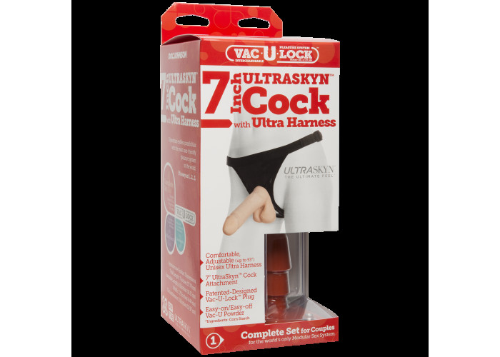 Страпон Doc Johnson Vac-U-Lock - 7 Inch ULTRASKYN Ultra Harness - це комплект, що складається з фалос-насадки, трусиків і універсального кріплення Vac-U-Lock.