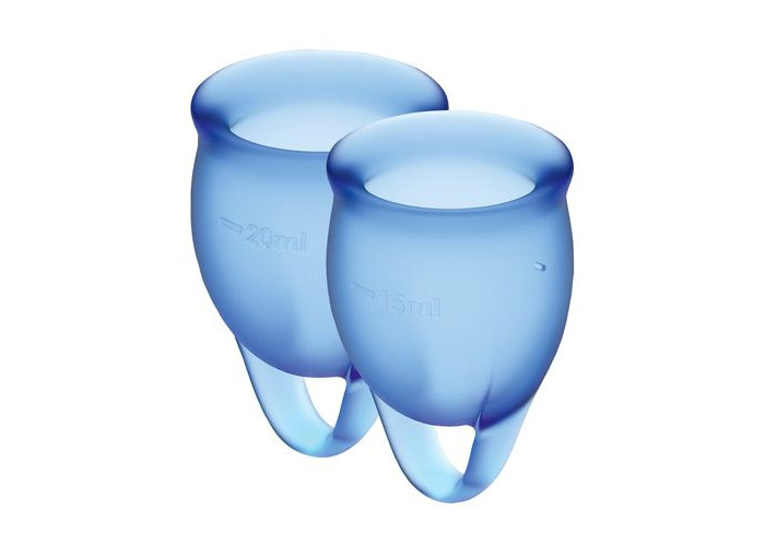 Пропонуємо купити набір менструальних чаш Satisfyer Feel confident Menstrual Cup (dark blue) — екологічну альтернативу тампоном, яка не поступається їм в комфортності носіння і вигідно відрізняється можливістю багаторазового використання. Виготовлені з медичного силікону, вони комфортні і безпечні. Дану модель особливо оцінять користувачі-початківці чаш, т. до. вона забезпечена надійним силіконовим кільцем для простого витягання. У наборі — дві чаші, на 15 мл і 20 мл і мішечок для зберігання. Набір упакований в дуже красиву подарункову коробку.