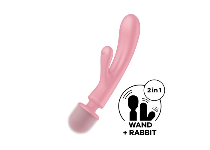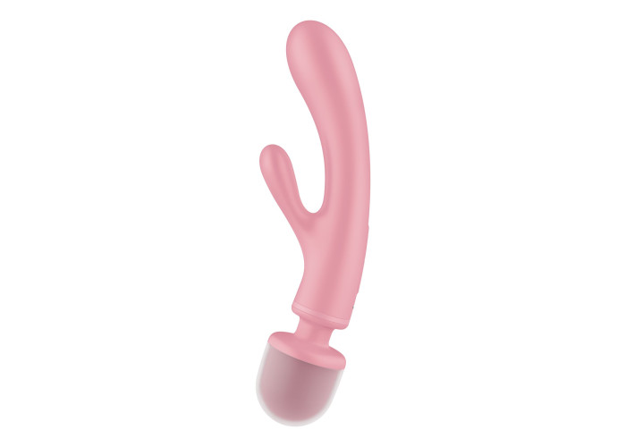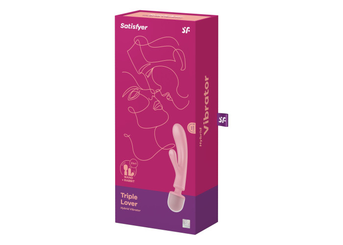 Класичний вібратор-кролик чи ванд-масажер для будь-яких чутливих зон? Немає потреби вибирати! Просто необхідно купити вібратор-кролик з вібромасажером Satisfyer Triple Lover — іграшку для стимуляції клітора, точки G та масажу всього тіла. Три мотори забезпечують потужний вплив. Можна окремо керувати кроликом та ванд-масажером: по 12 режимів роботи для кожної частини цієї багатофункціональної іграшки. Повністю водонепроникний (IPX7), дуже тихий і неймовірно приємний на дотик — усе для незабутнього задоволення!
