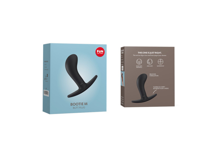 Анальна пробка Fun Factory BOOTIE виготовлена з високоякісного медичного силікону з гладенькою поверхнею. Загнутий кінчик із круглим потовщенням під час введення створює відчуття приємної наповненості: він дістає до всіх таємних чутливих точок. Чоловікам така форма сподобається тим, що головка чудово стимулює простату. А жінкам носіння BOOTIE під час статевого акту допоможе зробити стимуляцію точки G більш яскравою: іграшка «посуває» її ближче до пеніса або дилдо, тому ви отримуєте додаткову стимуляцію з кожною фрикцією. Вузька гнучка основа з тонким дугоподібним обмежувачем щільно й легко поміщається між сідницями, даючи можливість міняти пози з комфортом.