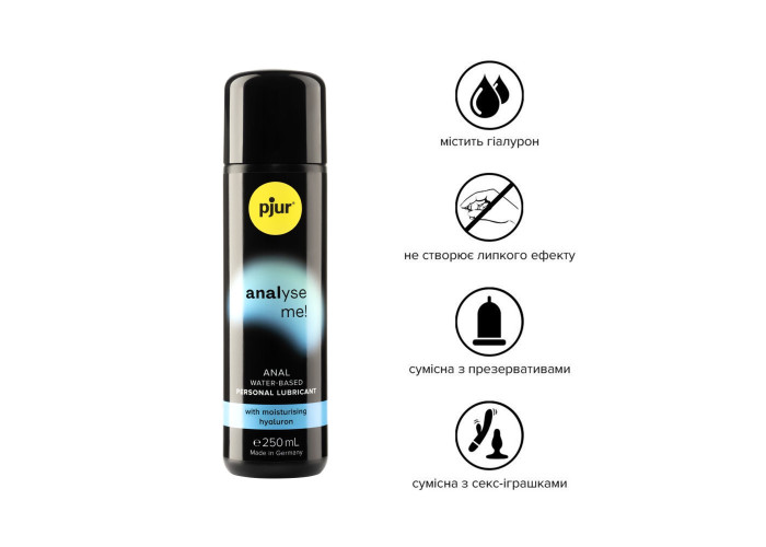 Пропонуємо купити анальну змазку на водній основі pjur analyse me! Comfort water glide, яка порадує вас тривалим ефектом ковзання завдяки своїй формулі, багатій на гіалурон.