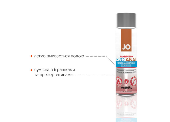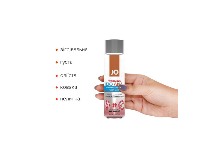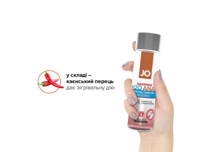 Змазка на водній основі JO H2O — WARMING (120 мл) — це інтимний лубрикант на водній основі, що використовується як доповнення до природної змазки. Виготовлений із використанням гліцерину виключно рослинного походження, цей лубрикант, що користується великою популярністю, забезпечує комфортне ніжне ковзання й не залишає відчуття липкості.