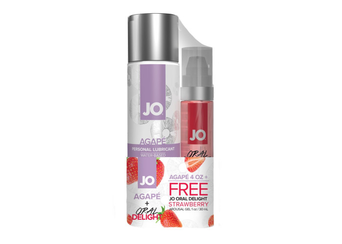 Насолоджуйтесь тривалими хвилинами божественної та комфортної близькості разом із вашим партнером — купіть комплект JO GWP — Agape 120 ml & Oral Delight — Strawberry 30 мл.