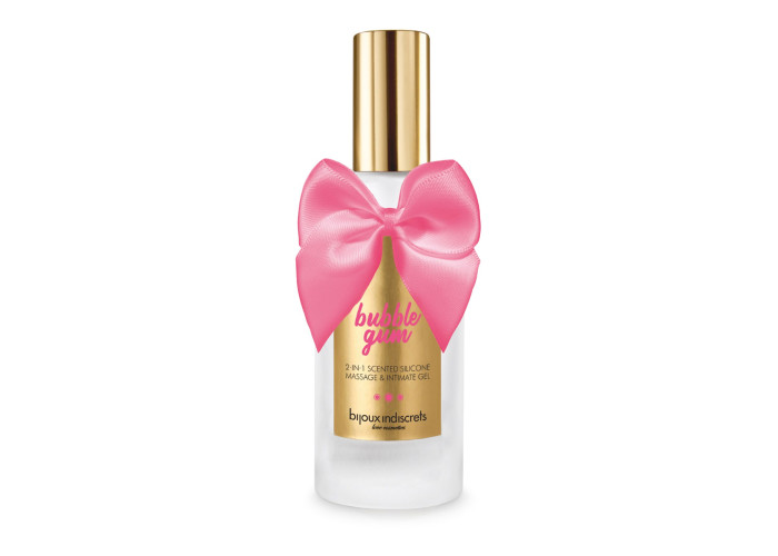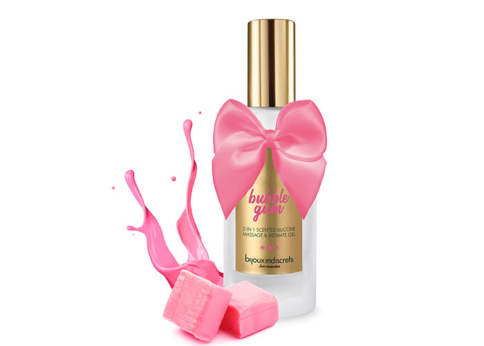 Чуттєвий аромат лубриканта на силіконовій основі 2в1 Bijoux Indiscrets Bubblegum нагадує класичну полуничну жуйку, яка створює збуджуючу та яскраву атмосферу. Силіконова основа гелю має тривалу дію і не розчиняється у воді, що дає можливість використовувати його в душі. Порівнюючи зі звичайною масажною олією або інтимним лубрикантом, густий силіконовий гель витрачається економніше в кілька разів. Під час нагрівання на шкірі гель розкриває весь свій ароматний нотний ряд, створюючи приголомшливу атмосферу близькості з вашим партнером. У складі лубриканта лише натуральні інгредієнти, тому він не спричиняє подразнень, а аромат-унісекс підійде як жінкам, так і чоловікам. Можна використовувати з латексними презервативами, але не можна використовувати із секс-іграшками із силікону. Окрім того, вишукане пакування гелю робить його стильним та оригінальним подарунком.