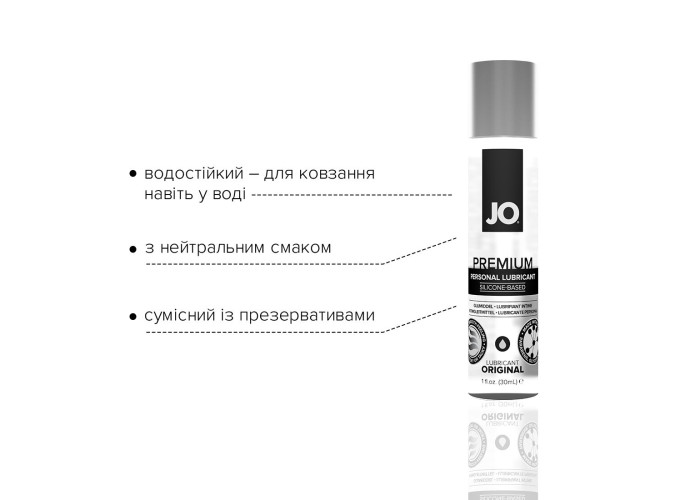 JO® PREMIUM — це інтимний лубрикант на основі силікону, що використовується як доповнення до природної змазки для отримання більшого задоволення від інтимної близькості. Забезпечує довге ніжне оліїсте ковзання, водостійкий, ідеально підходить для пестощів у нестандартних умовах. JO® PREMIUM не містить консервантів і виготовлений із застосуванням силікону лише найвищої якості. Невеликої кількості вистачає надовго!