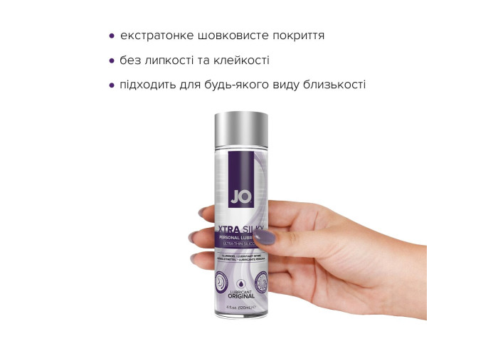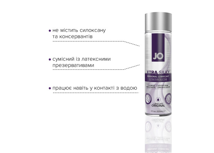 Цей лубрикант спеціально розроблений для того, щоб зробити інтимну близькість максимально комфортною й доповнити природну змазку. JO Xtra Silky Silicone створений на основі високоякісного силікону та збагачений вітаміном Е. Це ультраковзна змазка для довгого задоволення та додаткового зволоження.