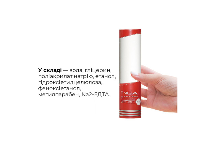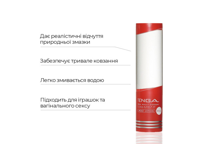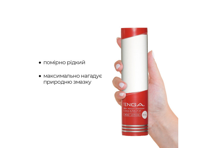 100 % реалістичні відчуття від природної змазки, яка забезпечує тривале комфортне ковзання, легко змивається водою та підходить як для мастурбації, так і для проникного сексу — усе це лубрикант стандартної консистенції Tenga Hole Lotion Real. Крім всього вже переліченого, змазка Tenga призначена для подовження терміну служби вашого мастурбатора та максимально яскравого задоволення від його використання.