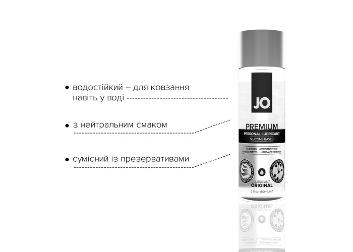 JO® PREMIUM — це інтимний лубрикант на основі силікону, що використовується як доповнення до природної змазки для отримання більшого задоволення від інтимної близькості. Забезпечує довге ніжне оліїсте ковзання, водостійкий, ідеально підходить для пестощів у нестандартних умовах. JO® PREMIUM не містить консервантів і виготовлений із застосуванням силікону лише найвищої якості. Невеликої кількості вистачає надовго!