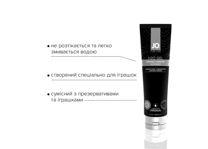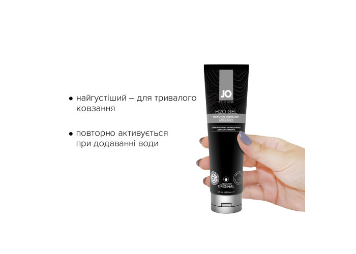 JO® H2O GEL ДЛЯ ЧОЛОВІКІВ — це інтимний лубрикант на водній основі, призначений для зволоження та підвищення сексуальної активності, особливо добре підходить для мастурбації. JO® H2O GEL ДЛЯ ЧОЛОВІКІВ виготовлений із використанням гліцерину виключно рослинного походження й має особливу густу консистенцію, що дарує абсолютно нові відчуття. Завдяки особливій гелеподібній текстурі лубрикант не розтікається, а залишається саме там, куди ви його нанесли, забезпечуючи тривале ковзання без липкості. Його формула розроблена спеціально для сексуальних іграшок, сумісна з багатьма матеріалами та легко змивається.