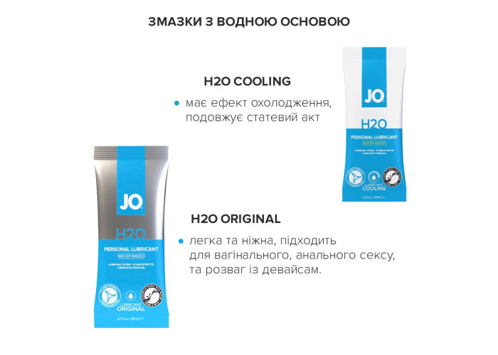 Лубрикант на водній основі JO H2O — ORIGINAL, легкий та ніжний, підходить для вагінального та анального сексу, а також цікавих розваг із девайсами без обмежень.