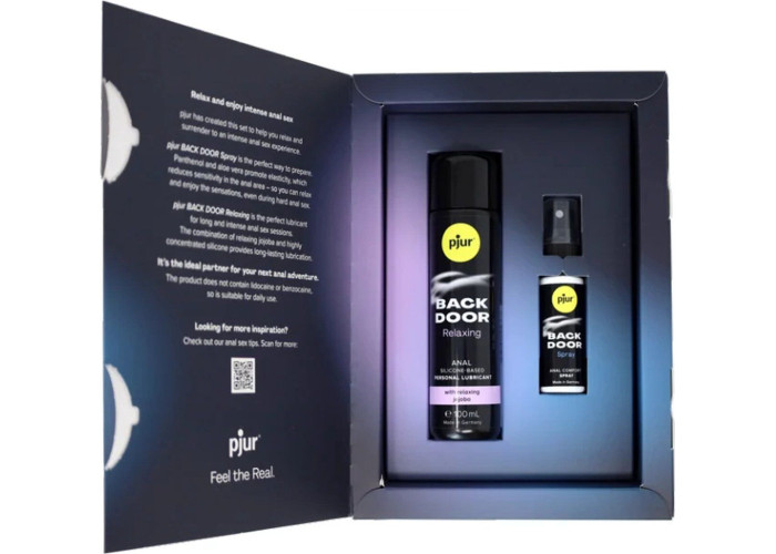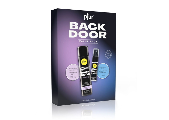 Набір pjur BACK DOOR Value Pack, у якому є анальна змазка на силіконовій основі (100 мл) та розслаблювальний анальний спрей (20 мл) — це чудова можливість отримати два якісні засоби для анального сексу за вигідною ціною. У наборі є анальна змазка на силіконовій основі pjur backdoor anal Relaxing jojoba silicone lubricant (100 мл). Це висококонцентрований лубрикант тривалої дії з екстрактом жожоба, який активно зволожує та пом’якшує слизову, роблячи її більш еластичною. Змазка створена для комфортного анального сексу без сухості. Ідеально доповнює змазку спрей для анального сексу pjur backdoor (20 мл) з розслаблювальним та десенсибілізувальним ефектом. У складі спрею пантенол та екстракт алое вера, які допомагають розслабленню та надають заспокійливий ефект. Жодного болю та дискомфорту, тільки задоволення!