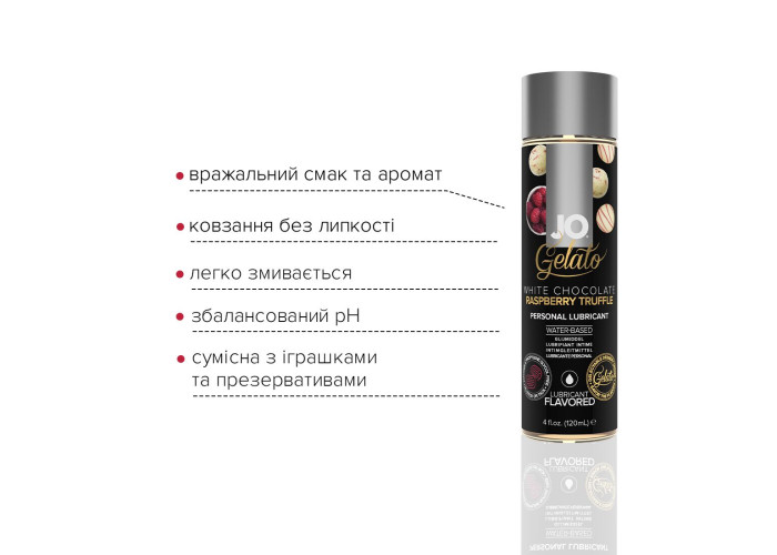Пропонуємо купити лубрикант на водній основі JO GELATO White Chocolate Raspberry — довготривалий, не липкий та смачний. Завдяки безпечній формулі без цукру та парабенів на основі рослинного гліцерину продукт забезпечує довге ковзання та насичений смак білого шоколаду з малиною. Без хімічного смаку. Чудовий варіант для оральних пестощів, проникного сексу та ігор із девайсами!