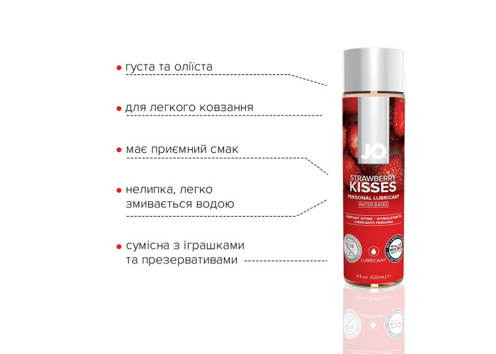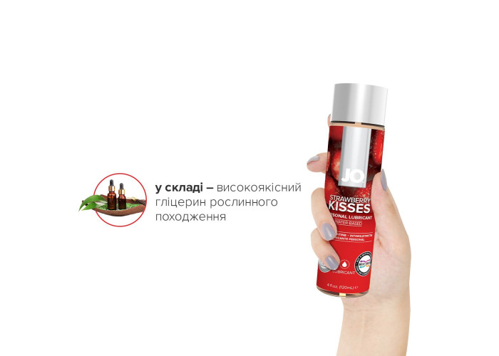 Якщо вам потрібна чиста змазка на водній основі та водночас із якимось цікавим смаком, рекомендуємо купити лубрикант на водній основі JO H2O — STRAWBERRY KISS. Створений на основі рослинного гліцерину, з натуральним ароматичним екстрактом та солодким смаком полуниці, без цукру, він забезпечує яскраву прелюдію, незабутні оральні пестощі та тривале ковзання.