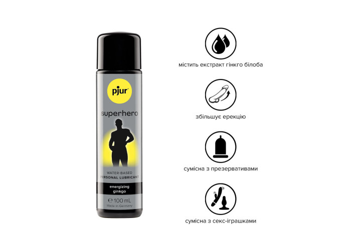 Пропонуємо вам купити лубрикант-пролонгатор на водній основі pjur Superhero glide. Ця змазка преміумкласу для чоловіків має підбадьорливий ефект, поліпшує циркуляцію крові й надає стимулювальну дію.