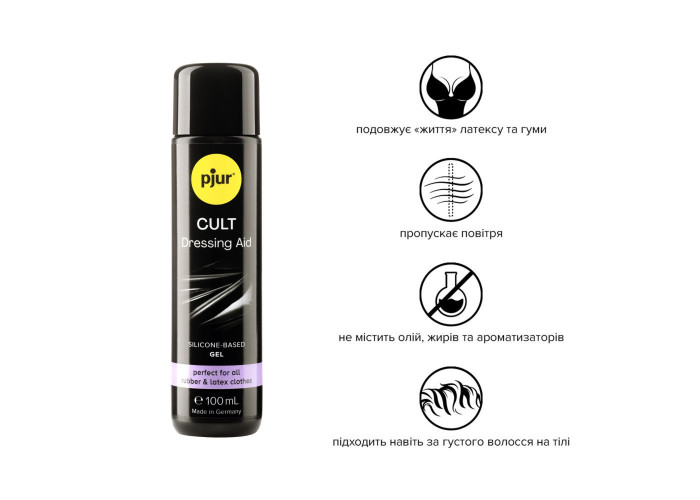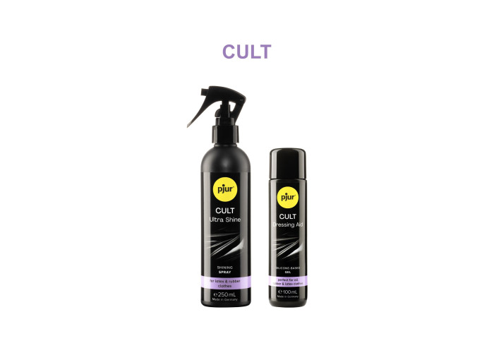 Тальки та присипки — це вчорашній день! pjur Cult розроблений спеціально для еротичного вбрання із латексу та допоможе вам із легкістю одягнути будь-які костюми! Спеціальна формула pjur Cult дасть можливість швидко одягнути вузький одяг, що облягає, без жодних незручностей, навіть якщо на вашому тілі багато волосся! Гума й латекс стануть м’якими та гладенькими.