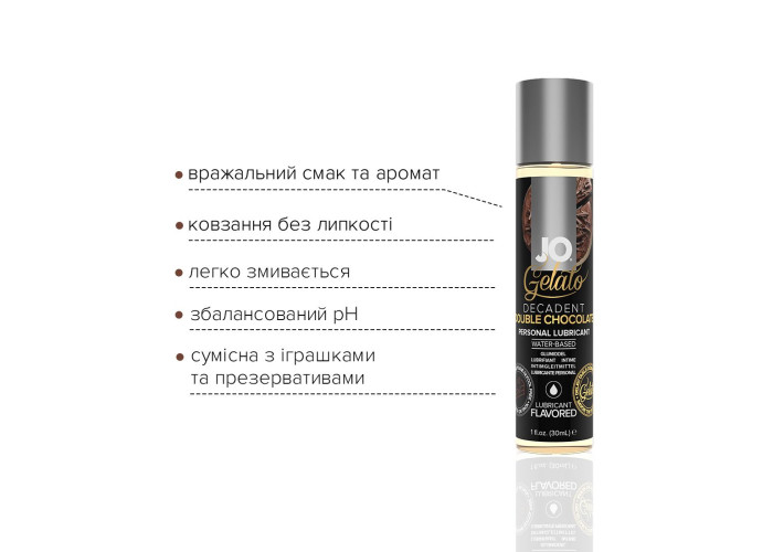 Пропонуємо купити лубрикант на водній основі JO GELATO Double Chocolate — довготривалий, не липкий та смачний. Завдяки безпечній формулі без цукру та парабенів на основі рослинного гліцерину продукт забезпечує довге ковзання та насичений шоколадний смак. Без хімічного смаку. Чудовий варіант для оральних пестощів, проникного сексу та ігор із девайсами!