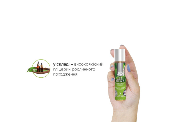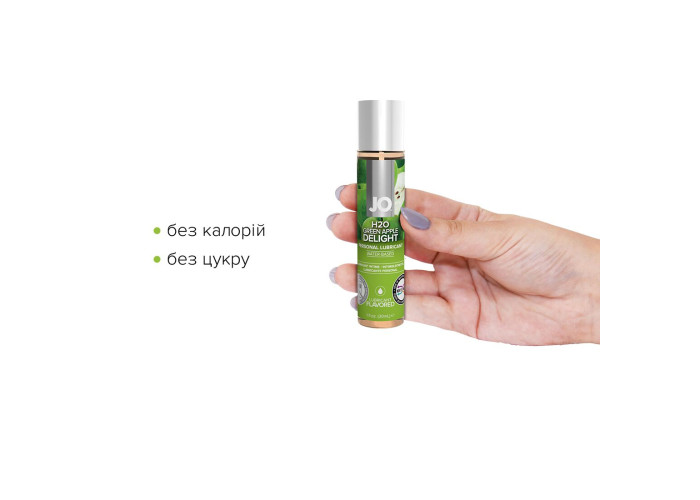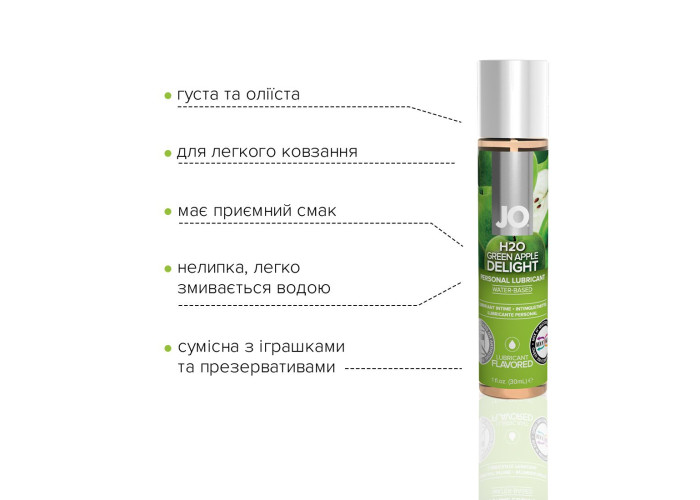 Лубрикант на водній основі JO H2O — GREEN APPLE яблучне захоплення — це інтимний лубрикант із широкою гамою насичених ароматів із колекції ароматизованих засобів JO® H2O.