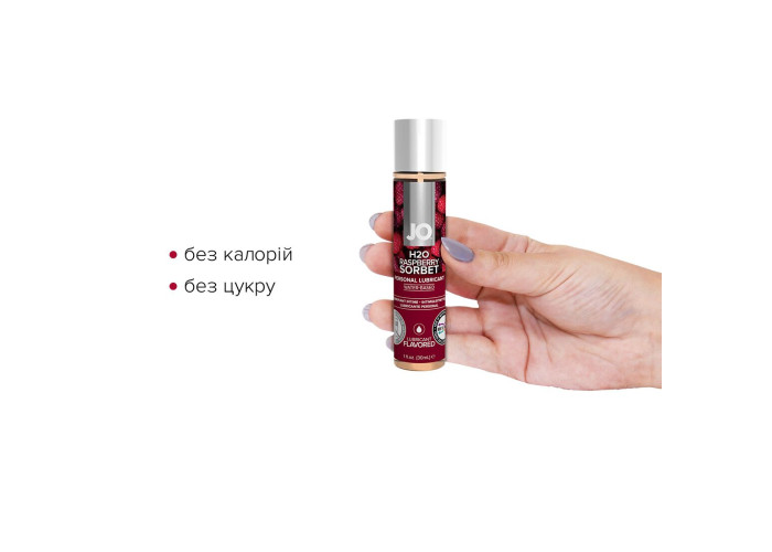 Лубрикант на водній основі JO H2O — RASPBERRY SORBET малиновий сорбет (30 мл) — це інтимний лубрикант із широкою гамою насичених ароматів із колекції ароматизованих засобів JO® H2O.