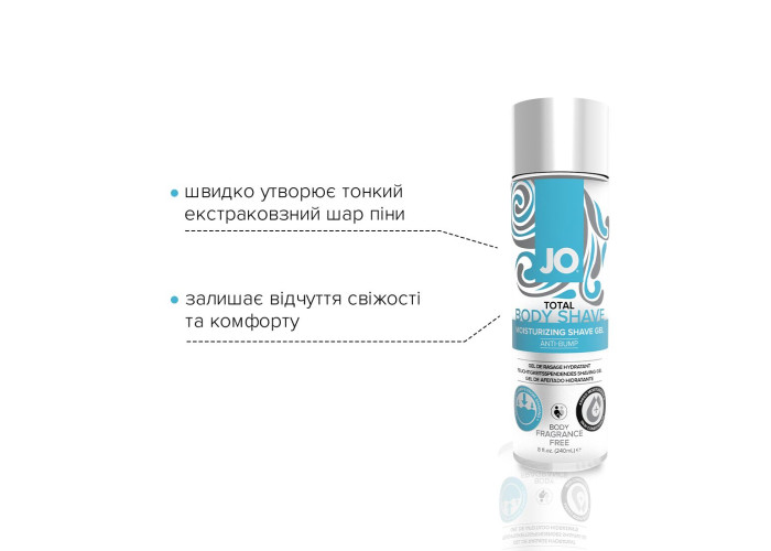 Гель для гоління та інтимної гігієни JO TOTAL BODY SHAVE GEL FRESH LIME — густий, концентрований гель, утворює щільну екстраковзну піну, яка надійно оберігає шкіру від мікротравм і пошкоджень у процесі гоління. З ним шкіра інтимних зон буде супергладенькою та ніжною без натяку на червоні крапки, без порізів, без подразнень. Гель має дуже економічну витрату та ніжну текстуру. Швидко утворює тонкий-екстраковзний шар піни з дрібними пухирцями, ідеальний для гоління. Завдяки ніжній концентрованій формулі ідеально видаляються забруднення навіть із найчутливіших зон, залишаючи відчуття свіжості та комфорту.
