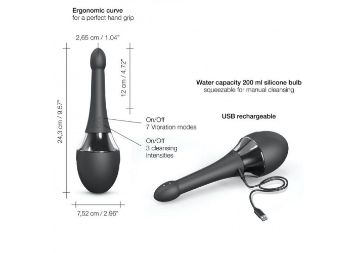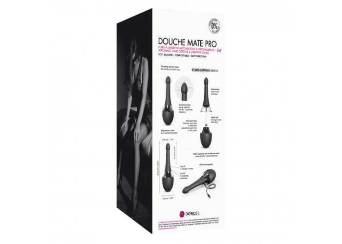 Простий у використанні, автоматичний анальний душ-вібратор Dorcel Douche Mate Pro забезпечує максимально глибоке очищення на 360°, завдяки п'яти різноспрямованим струменям. Все, що вам необхідно, це заповнити спеціальний резервуар прохолодною водою (температура не вище 30°), ввести гнучкий силіконовий кінчик в анус і обрати один із трьох режимів очищення. Невеликий діаметр кінчика дозволяє використовувати душ не лише тим, хто давно практикує анальний секс, а й новачкам. І це ще не все! Анальний душ пропонує вам 7 режимів вібрації, які допоможуть зробити гігієнічні процедури ще й приємними. Дві кнопки керування режимами знаходяться на силіконовому конусі, одна кнопка вмикає/вимикає режими очищення, а друга – вібрації.