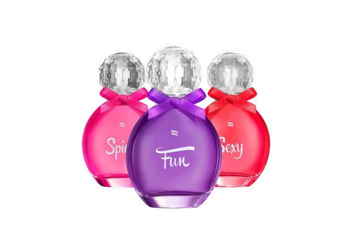 Придивіться до цієї симпатичної пляшечки з кришкою у формі кристала й фіолетовим бантом. Дивовижний вигляд, чи не так? Рекомендуємо придбати парфуми з феромонами Obsessive Perfume Fun із запахом ароматної дамаської троянди, квітів апельсина й ванілі.