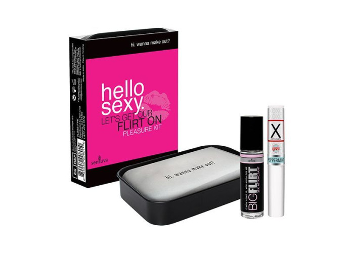 Пропонуємо купити набір Sensuva — Hello Sexy Pleasure Kit — чудовий інтимний подарунок найвищої якості! У комплект входить два продукти: 1 тюбик ексклюзивного м’ятного бальзаму для губ з ефектом вібрації та флакон-ролик із феромонами. Все упаковано в милу бляшану коробочку.