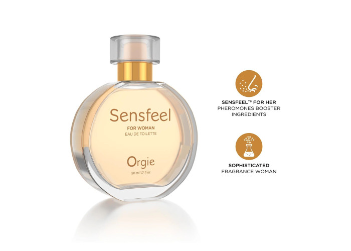 Секрет дії жіночих парфумів із феромонами Orgie – Sensfeel for Woman — це ексклюзивна формула з активним інгредієнтом Sensfeel for Her™. Він поєднує в собі натуральні компоненти — білий жасмин (Jasminum officinale) і коротколанцюгові жирні кислоти (SCFA) з ріжкового дерева (Ceratonia siliqua). Завдяки такому складу він дуже добре імітує жіночі статеві феромони копуліни, які можуть стимулювати вироблення тестостерону в чоловіків, посилюючи їхній потяг.