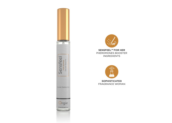 Секрет дії жіночих парфумів із феромонами Orgie – Sensfeel for Woman — це ексклюзивна формула з активним інгредієнтом Sensfeel for Her™. Він поєднує в собі натуральні компоненти — білий жасмин (Jasminum officinale) і коротколанцюгові жирні кислоти (SCFA) з ріжкового дерева (Ceratonia siliqua). Завдяки такому складу він дуже добре імітує жіночі статеві феромони копуліни, які можуть стимулювати вироблення тестостерону в чоловіків, посилюючи їхній потяг.
