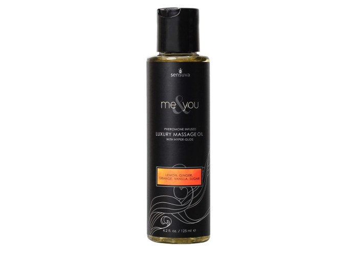 Пропонуємо купити масажну олію Sensuva — Me&You Lemon, Ginger, Orange, Vanilla & Sugar — розкішна олія з суперковзним ефектом, що досягається за рахунок додавання силікону. Феромони у складі мають збуджувальний ефект, а неймовірний теплий аромат дарує грайливий настрій. З цією олією масаж буде максимально довгим, чуттєвим і хвильним! Підходить і для неї, і для нього.