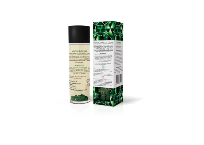 Привести думки до ладу після довгого і складного дня, налаштуватися на романтичне побачення або його інтимне продовження допоможе масажна олія антистрес. Свіжий запах зеленого квітучого лугу підніме настрій, а авантюрин принесе спокій і відчуття внутрішнього балансу. В основі цього засоба - органічні масла, доповнені цінною олією авокадо, яка має унікальні омолоджуючі властивості та підвищує еластичність шкіри. Крім того, олія з авантюрином виглядає приголомшливо і може стати розкішним подарунком.