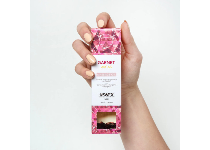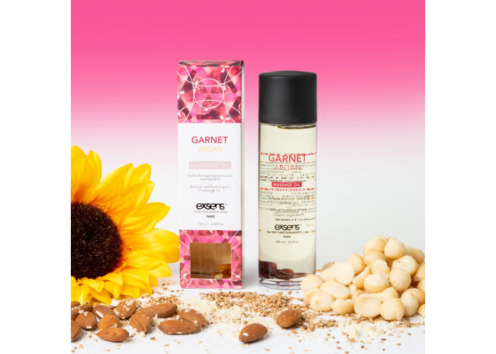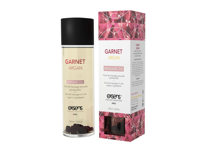 Руйнуйте перешкоди і порушуйте табу з ароматною масажною олією. Спробуйте придбати масажну олію Exsens Garnet Argan (чуттєва з гранатом), створена з натуральних інгредієнтів і доповнена напівкоштовними каменями. Гранат стимулює чуттєвість і знімає втому, при цьому арганова олія захищає і відновлює шкіру, а пряний аромат діє неймовірно збудливо.