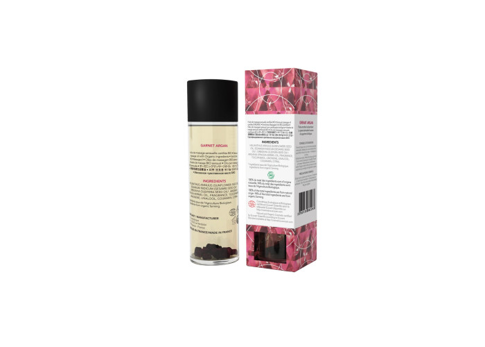 Бажаєте експериментів і еротичних пригод? Спробуйте почати зі збудливого масажу з цією олією, яка розбудить чуттєвість і розкриє внутрішню сексуальність. Розкішний аромат солодких прянощів створить інтимну атмосферу, арганова олія додасть шкірі бархатистість, а гранатова розсип допоможе забути про втому. Склад олії на 100% натуральний: в нього входять органічні рослинні олії, у тому числі і арганова, а також кілька справжніх гранатів.