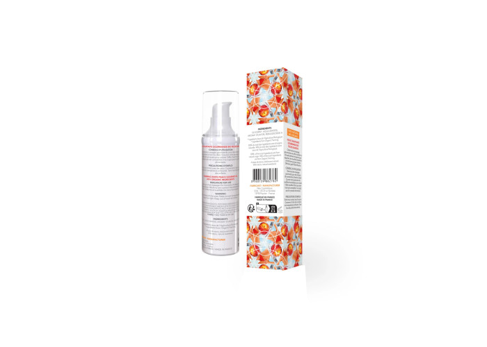 До складу олії входять тільки натуральні інгредієнти, органічні на 94%. Олія на водній основі і без проблем змивається зі шкіри. Незважаючи на солодкий смак, олія не містить цукру, також відсутні парабени.