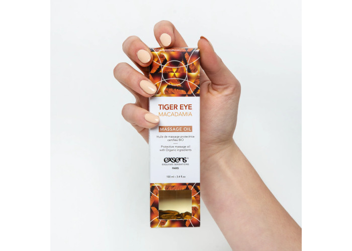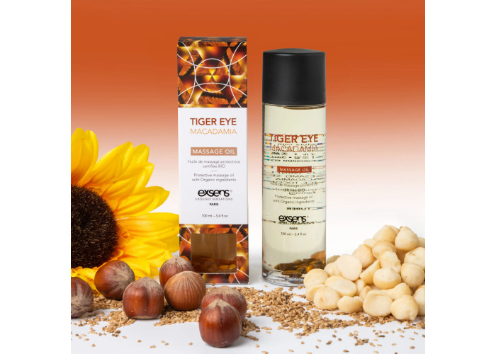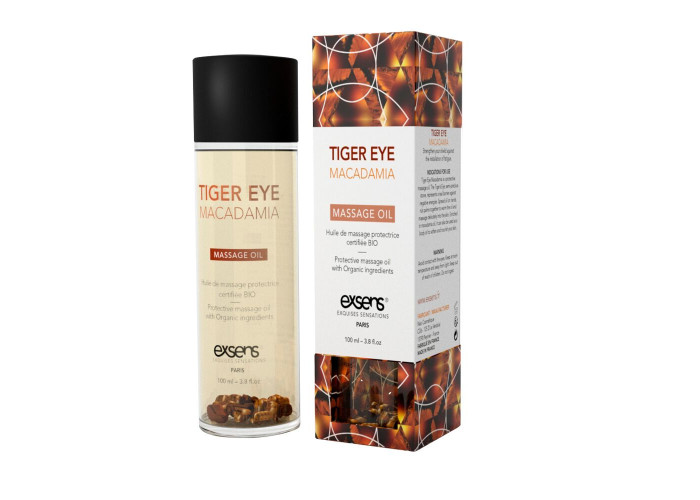 Якщо вам необхідно заповнити життєві сили і підвищити опірність зовнішньому негативу, то вам точно варто придбати масажну олію Exsens Tiger Eye Macadamia (захист з тигровим оком), повністю натуральне з органічними інгредієнтами. Тигрове око створює захист від зовнішнього впливу, олія макадамії пом'якшує і живить шкіру, а вишуканий фруктово-квітковий аромат створює грайливий настрій.