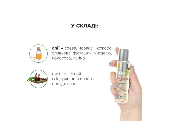 Масажна олія JO – Naturals Massage Oil – Coconut & Lime — це: