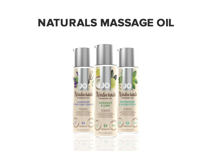 Побалуйте вашого партнера справжнім релаксом, що переходить у потужне збудження, купіть масажну олію JO – Naturals Massage Oil – Coconut & Lime.