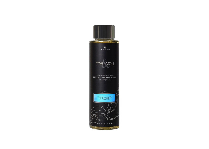 Пропонуємо купити масажне масло Sensuva - Me & You Vanilla, Sugar & Sweet Pea — розкішне масло з суперскользящим ефектом, який досягається за рахунок додавання силікону. Феромони у складі справляють збуджуючий ефект, а неймовірний ніжний аромат дарує грайливий настрій. З цим маслом масаж буде максимально довгим, чуттєвим і хвилюючим! Підходить і для неї, і для нього.