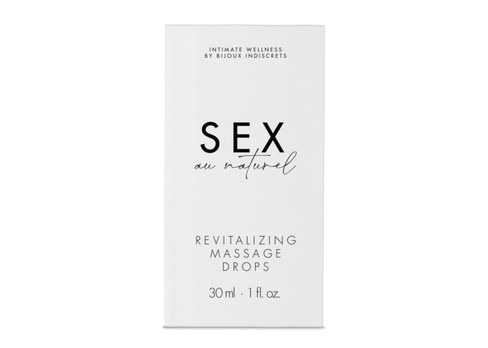Відновлювальні краплі для інтимного масажу Bijoux Indiscrets Sex au Naturel — Revitalizing Intimate Massage Drops на водній основі імітують природну змазку, мають легку текстуру, не липнуть і не залишають жирних слідів. Краплі посилюють природний захист шкіри на клітинному рівні, роблячи її менш сприйнятливою до зовнішнього агресивного середовища, прискорюють відновлення шкірного бар’єра, зберігають здоровий рівень pH, заспокоюють шкіру та підходять для щоденного застосування як інтимний доглядальний засіб.