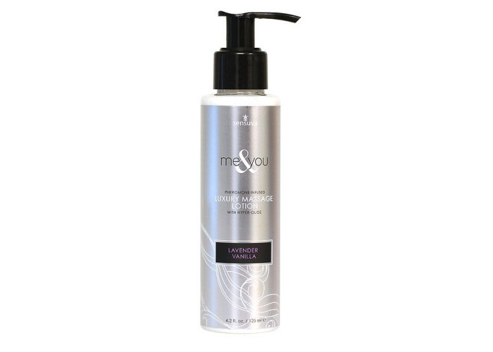 Пропонуємо купити масажний лосьйон Sensuva - Me&You Lavender Vanilla (125 мл) з феромонами, наповнений феромонами, натуральними маслами і екстрактами, створений за спеціальною формулою Hyper Glide для по-справжньому довгого чуттєвого масажу. Феромони, які підходять для чоловіків і жінок, створять хвилюючу атмосферу і подарують впевненість у своїй привабливості, а силікон у складі забезпечить тривале ковзання. Лосьйон огорне ніжним ароматом лаванди з теплою ноткою солодкої ванілі і зробить шкіру м'якою, гладкою і шовковистою. Флакон з зручним дозатором!