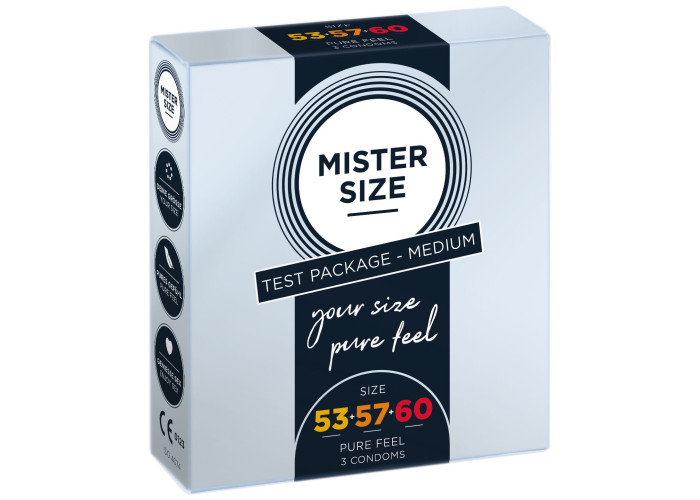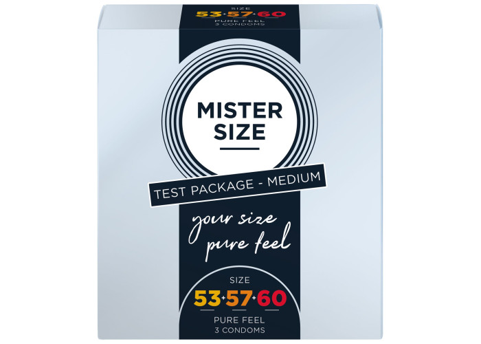 Якщо ви хочете отримати максимальну насолоду під час близькості й зовсім не хвилюватися про те, що презерватив може зісковзнути або порватися, вам обов’язково потрібно купити набір презервативів Mister Size - pure feel. Він дасть можливість ідеально підібрати розмір презерватива, і він сяде на пеніс буквально як друга шкіра! До набору входить 3 презервативи різних розмірів, щоб ви дослідним способом вибрали найбільш відповідний. Кондоми Mister Size виготовлені з якісного латексу товщиною всього 0,05 мм, чудово тягнуться і дуже міцні. Забезпечують надійний захист від ЗПСШ та небажаної вагітності. Кожен презерватив індивідуально упакований та покритий силіконовою змазкою. Без запаху.