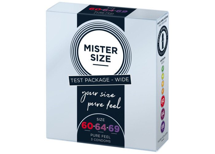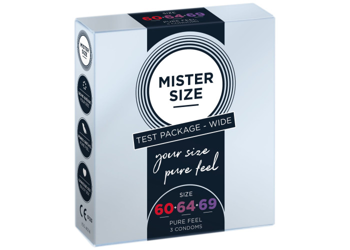 Якщо ви хочете отримати максимальну насолоду під час близькості й зовсім не хвилюватися про те, що презерватив може зісковзнути або порватися, вам обов’язково потрібно купити набір презервативів Mister Size - pure feel. Він дасть можливість ідеально підібрати розмір презерватива, і він сяде на пеніс буквально як друга шкіра! До набору входить 3 презервативи різних розмірів, щоб ви дослідним способом вибрали найбільш відповідний. Кондоми Mister Size виготовлені з якісного латексу товщиною всього 0,05 мм, чудово тягнуться і дуже міцні. Забезпечують надійний захист від ЗПСШ та небажаної вагітності. Кожен презерватив індивідуально упакований та покритий силіконовою змазкою. Без запаху.