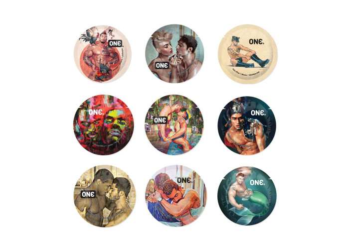 кожен пакетик прикрашений індивідуальним малюнком на тему MSM (Men Who Have Sex with Men).