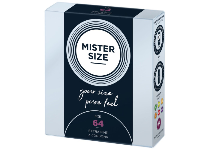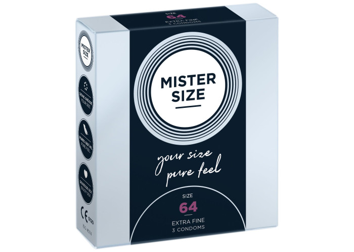 Презерватив без презерватива — лише природні відчуття під час близькості! Пропонуємо купити презервативи Mister Size - pure feel - 64, виготовлені з найтоншого каучукового латексу. Товщина стінок презерватива всього 0,05 мм, водночас він досить міцний, щоб не порватися у відповідальний момент, що забезпечує надійний захист від небажаної вагітності та ЗПСШ. Презервативи покриті силіконовою змазкою, легко надягаються та забезпечені зрозумілою ілюстрованою інструкцією. Головне, правильно дібрати розмір та насолоджуватися якісним сексом!