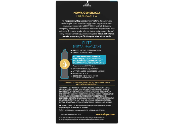 SKYN Elite: Ультратонкі презервативи, які приблизно на 15% тонші за стандартну лінійку. Вони створені для максимально природних відчуттів та швидкої передачі тепла тіла.