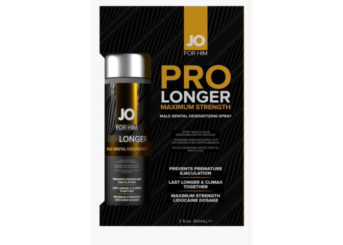 Пролонгувальний спрей JO Prolonger Spray (60 мл) — інтимний спрей-пролонгатор допоможе уповільнити настання еякуляції, що збільшить вашу стійкість у ліжку. Швидкодійний спрей моментально всотується та легкий у використанні. Тривала близькість та спільний оргазм. Лідокаїн знижує чутливість нервових закінчень та допомагає уповільнити настання еякуляції. Нанесіть за деякий час до близькості, щоб засіб встиг всотатися. Звертаємо вашу увагу, що засіб не призначений для орального використання.