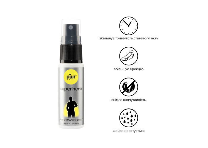 Рекомендуємо купити пролонгувальний спрей pjur Superhero, який розроблено спеціально для чоловіків, а його дія спрямована на сексуальні стосунки.